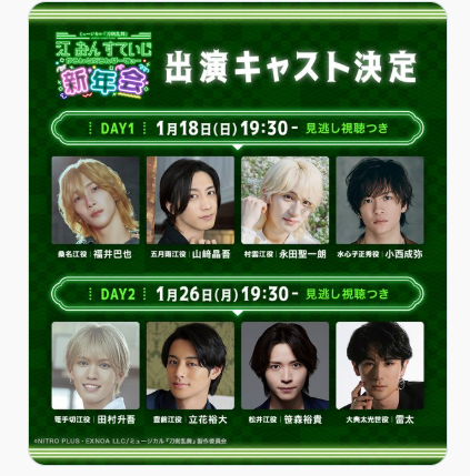 東京公演(1/8初日・1/9・1/18千穐楽)&大阪公演(1/25千穐楽)のライブ配信が決定!
